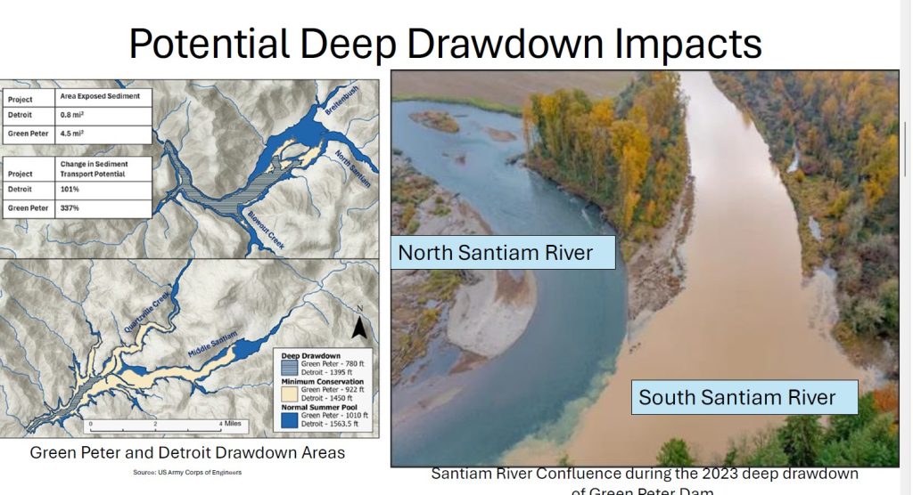 The Federal Judge’s ruling in 18-cv-00437-HZ on the Green Peter Dam and other dams is based on incomplete or misleading science. The published manuscript the judge relied on correctly identified the issue, but the proposed solution was faulty and is making the issue much worse. The South Santiam river after the first illegal drawdown. The Willamette River ran chocolate brown for one month at this time. This is illegal by Federal Water Pollution Control Act, specifically 33